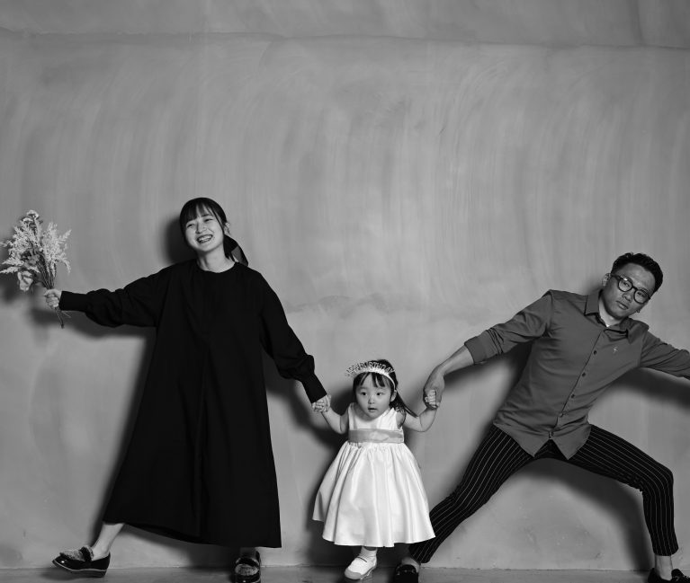 縦一列ポーズで家族の絆を強調!シンプルで印象的な家族写真
