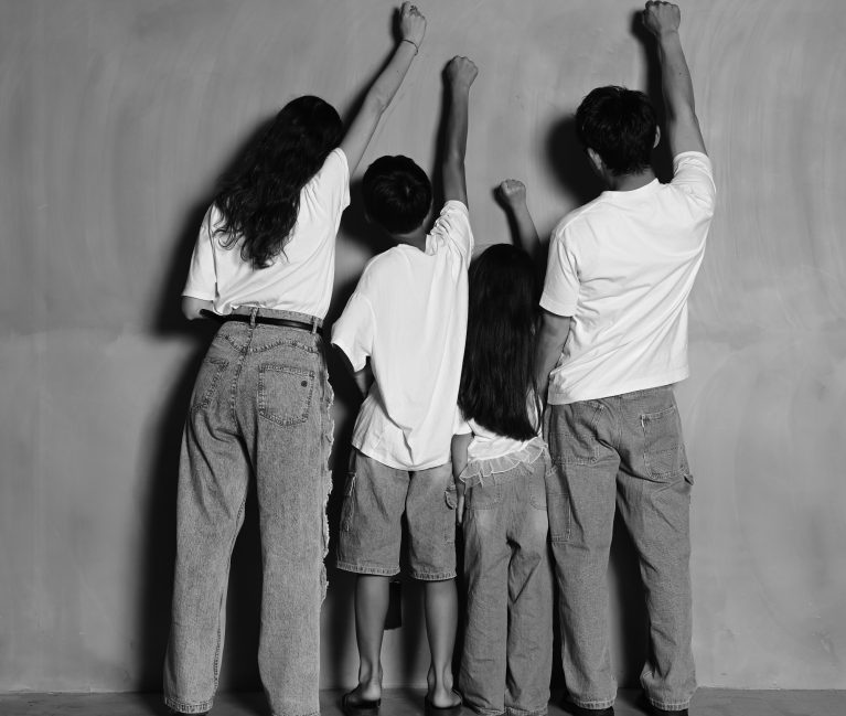 横一列で見せるチームワーク!家族写真で一体感を強調するポーズアイデア
