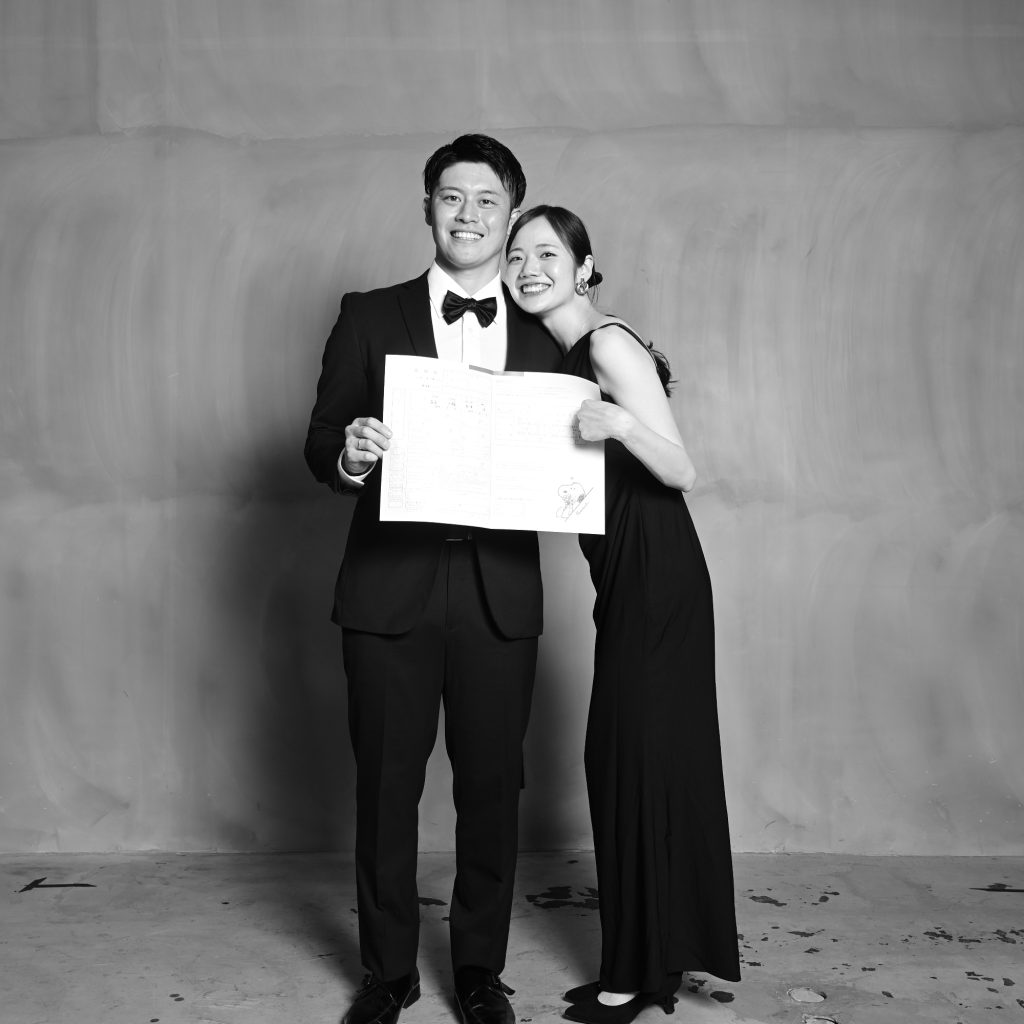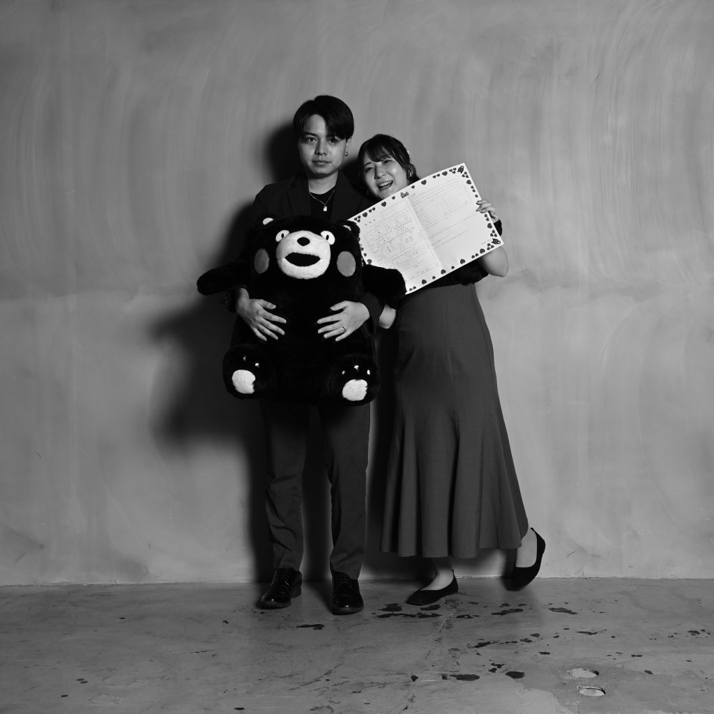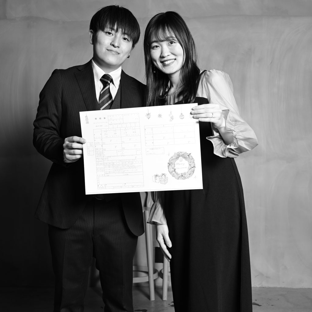 カップルフォトの中でも、一生に一度の「結婚」を連想させる特別感あふれるのが「婚姻届ポーズ」。実際に婚姻届を使ったり、撮影用のサンプルを用意してポーズを取るだけで、これからの新しいスタートを象徴する一枚になります。セルフ写真館なら周りを気にせず、ふたりの思い出を自分たちらしいスタイルで残せます。