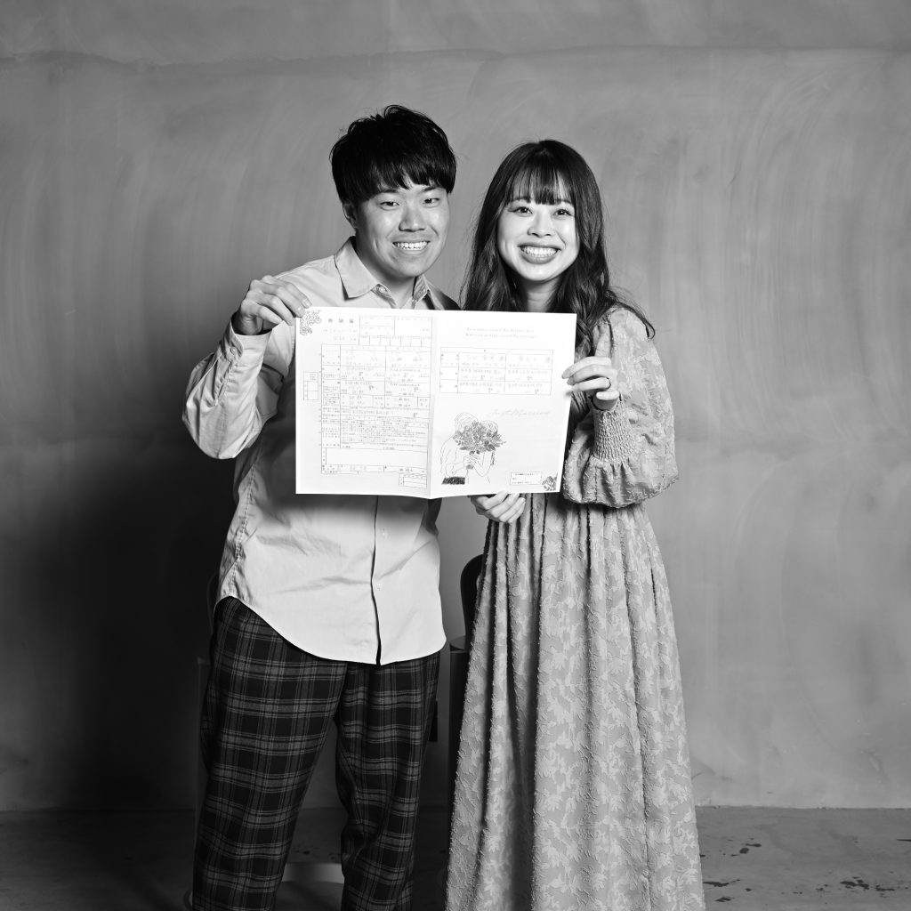 婚姻届を手に持つふたりの笑顔は、これからの未来に向かう希望や喜びをそのまま表現できます。 - 記念写真に最適