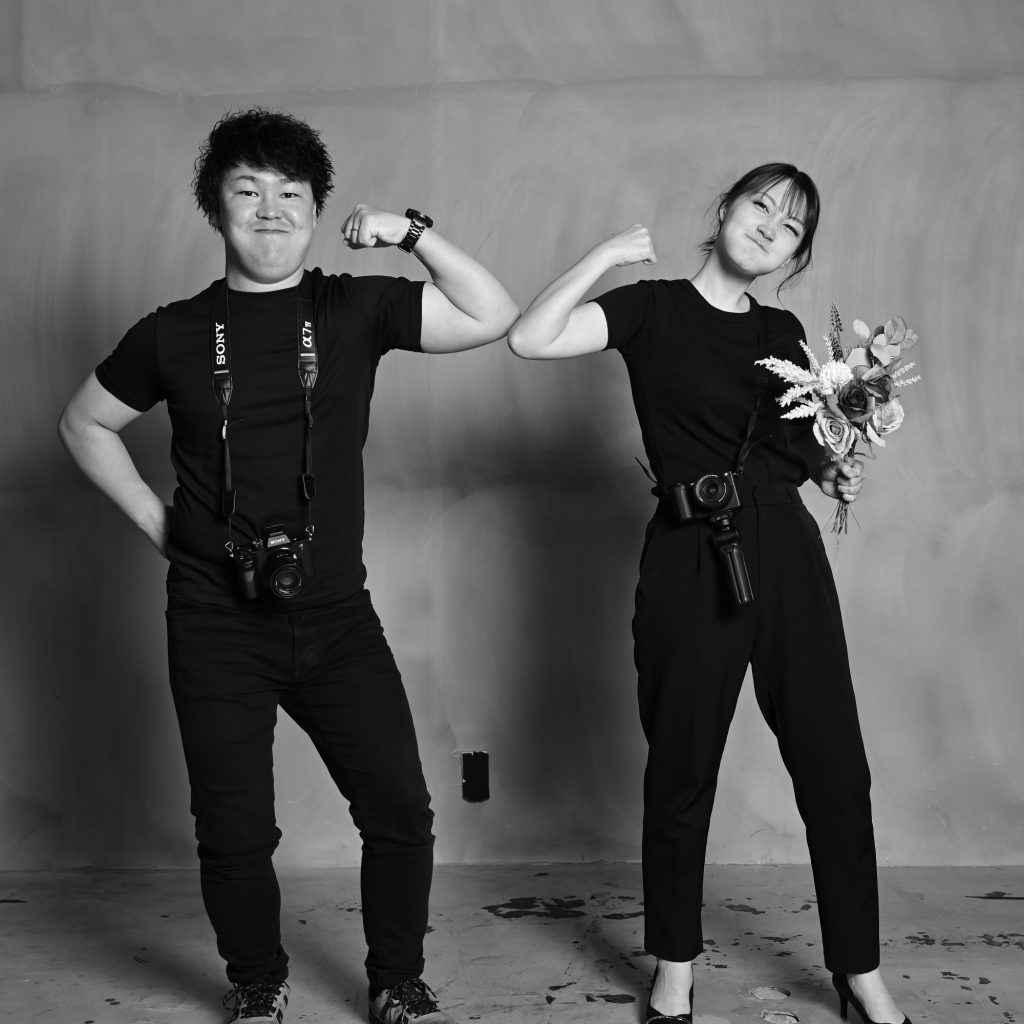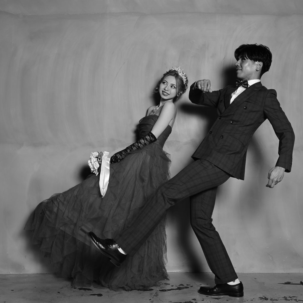 しっかりポーズをとることで、シンプルな背景でも洗練された雰囲気に。 - 二人らしさを表現できる