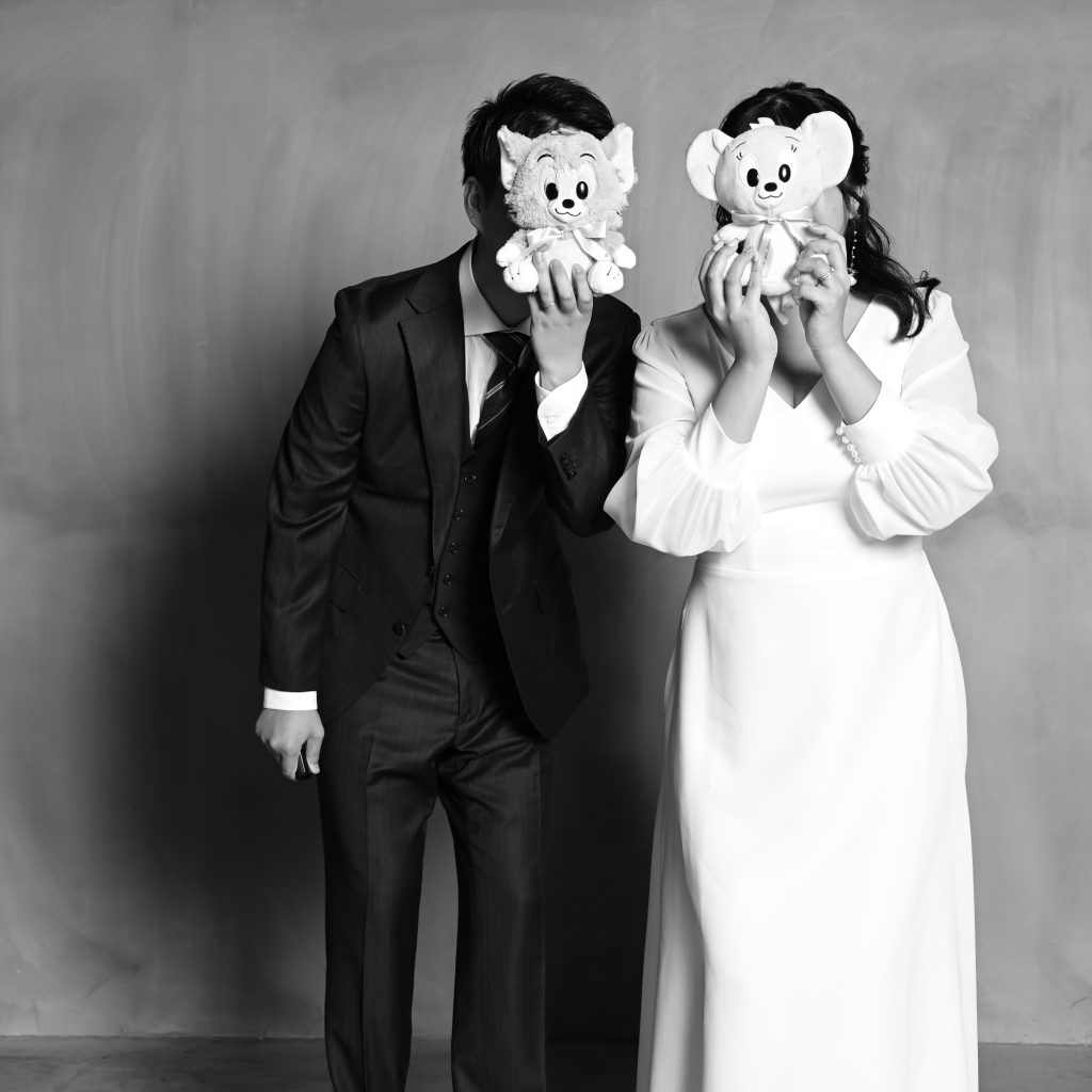 ただ立っているだけの写真よりも、小物を加えることで「ふたりの物語」を感じさせる一枚になります。 - 雰囲気を自由に演出できる