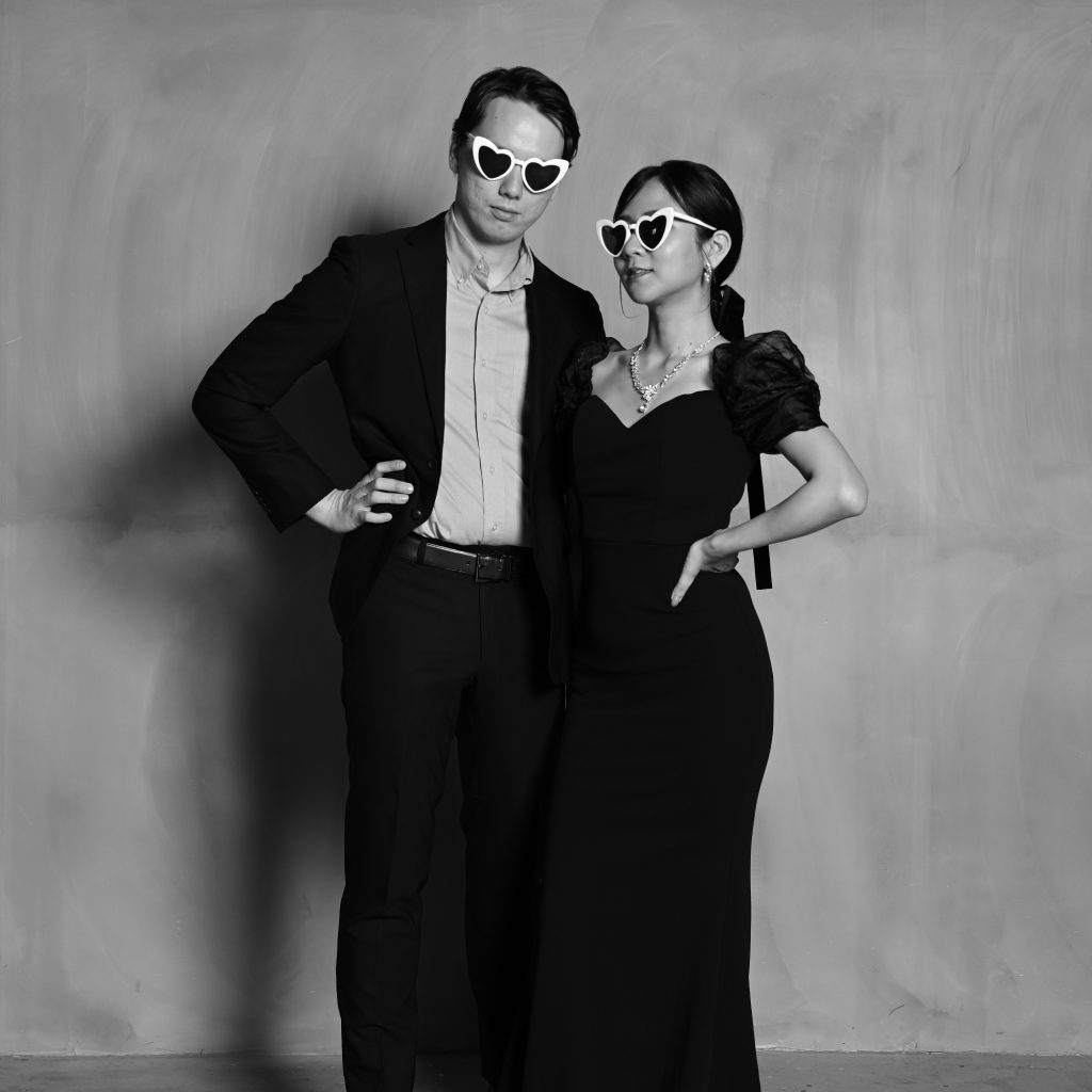 カップル写真をスタイリッシュに残したいなら「サングラスポーズ」がおすすめ。サングラスは、シンプルなコーディネートにもアクセントを加え、写真全体をぐっとおしゃれに見せてくれます。セルフ写真館でも気軽に取り入れられる小物のひとつで、季節を問わず幅広い撮影シーンに活用できます。