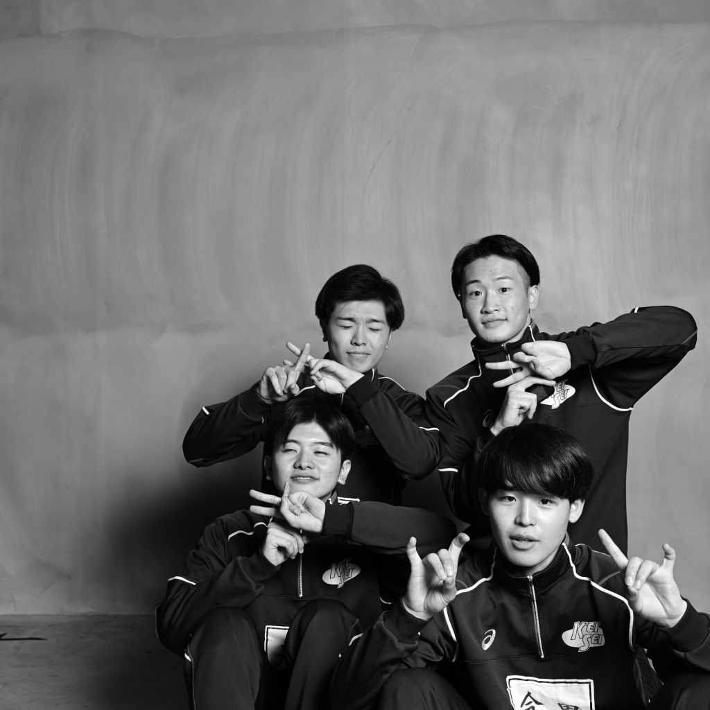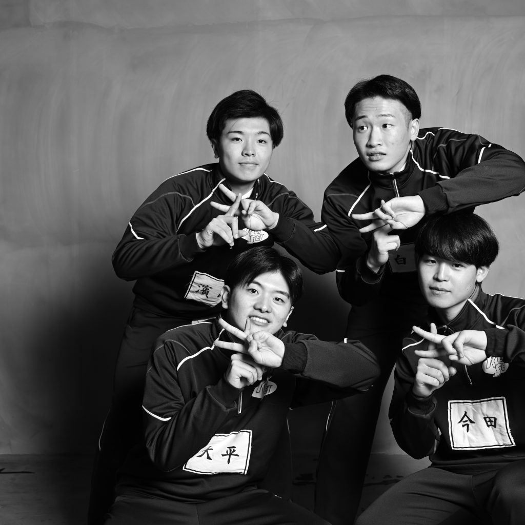 真ん中に立つ人を中心に左右対称のポーズをとると、迫力のある一枚に。 - ジャンプで決める