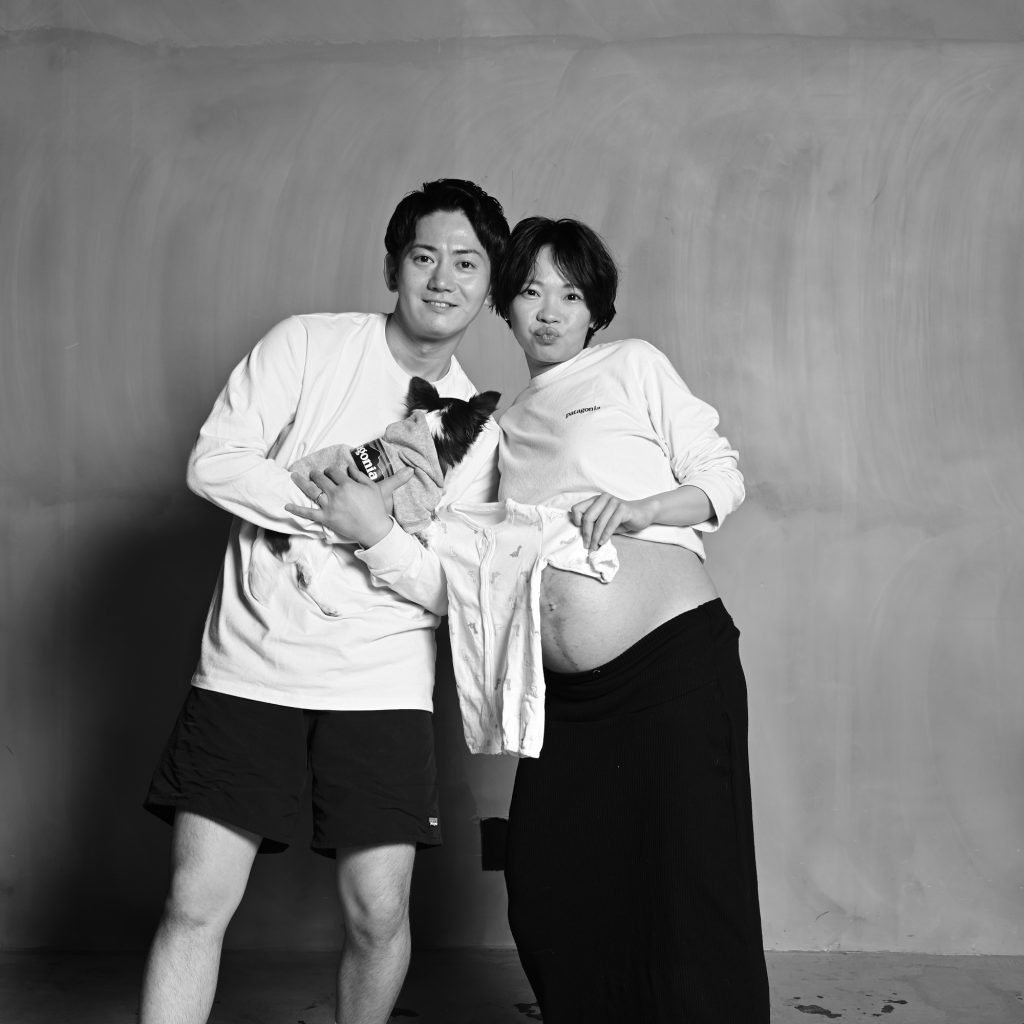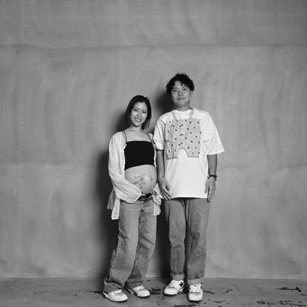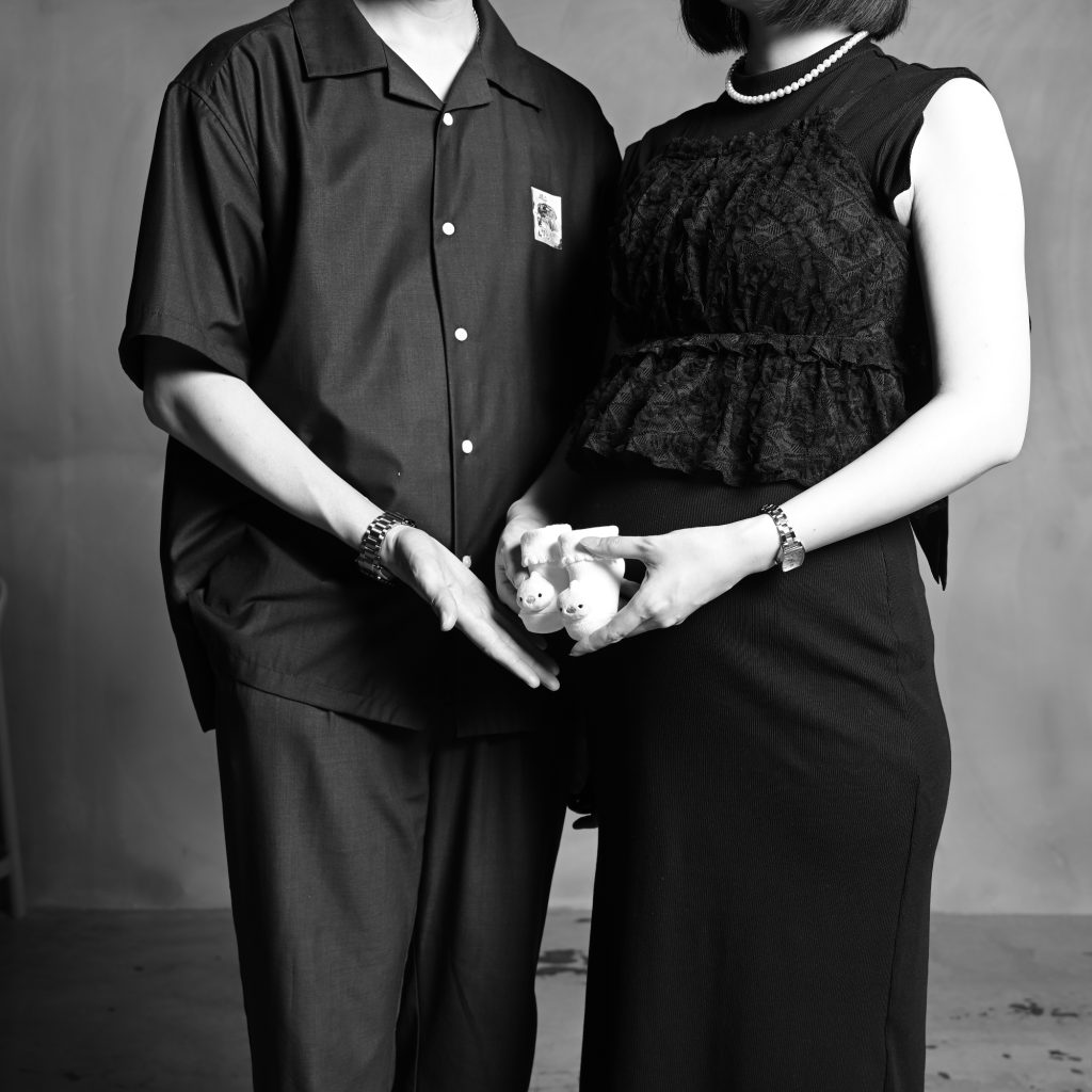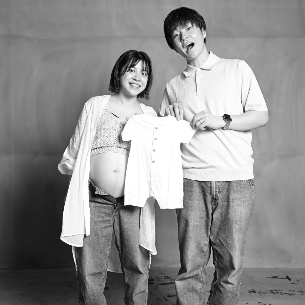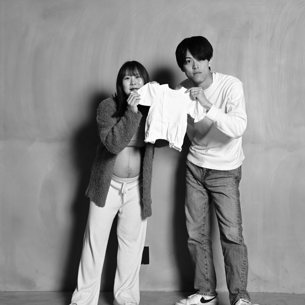 二人で子ども服を両端から持つことで、これから家族が増える喜びを表現できます。