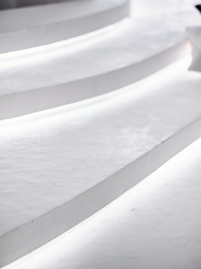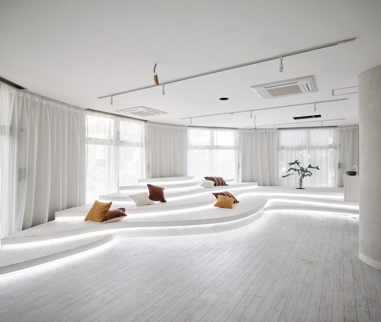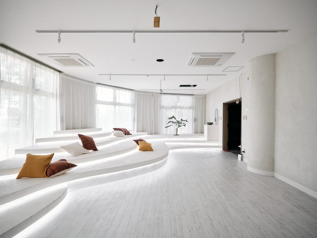 建物内部は、自然光をやわらかく受け止める白を基調とした空間。