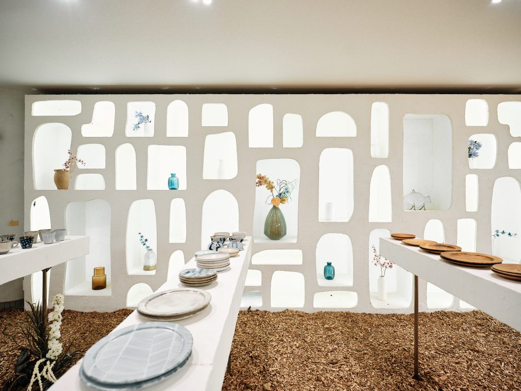 複合施設内には、クラフトや陶器などの作品を展示・販売するエリアもあります。