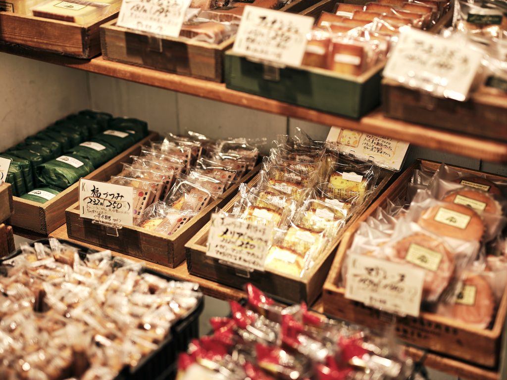 ショーケースには季節のケーキや焼き菓子がずらりと並び、訪れる人の目を楽しませます。