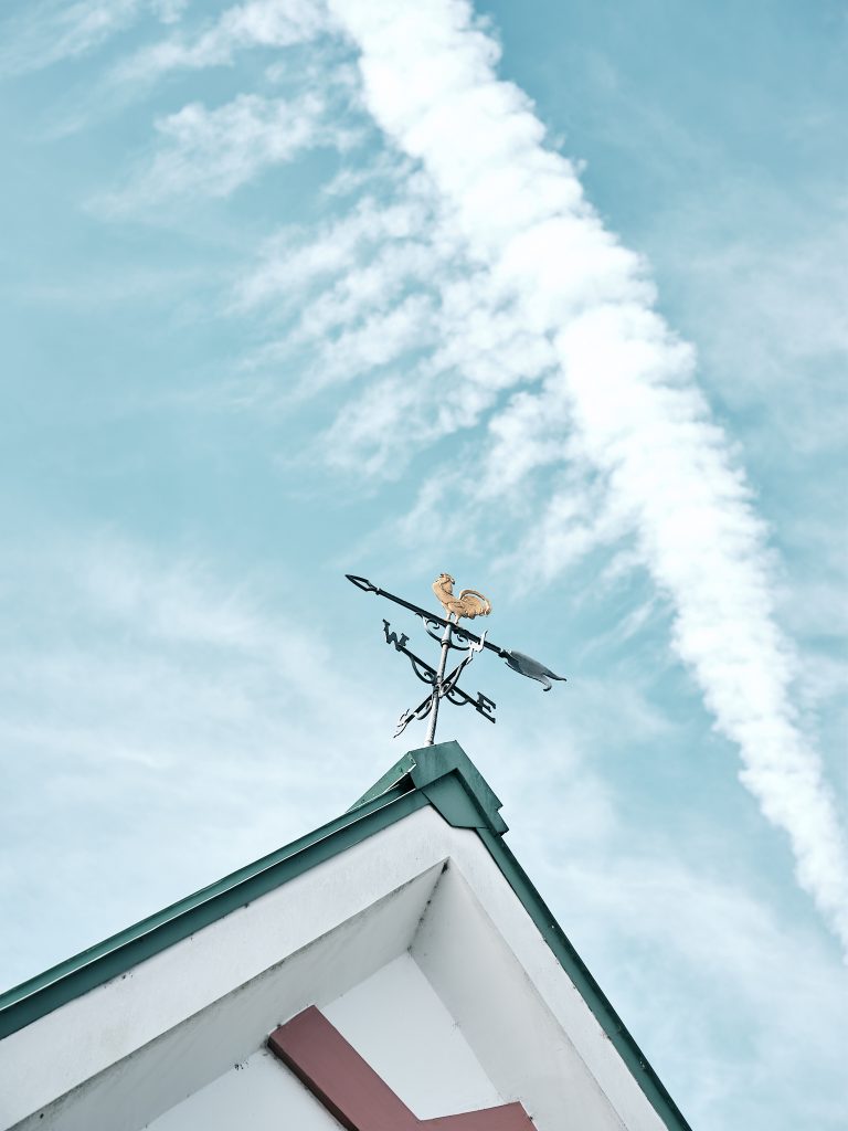 シンボルとなる風見鶏は、長年この地で愛されてきたお店の歴史を静かに見守っています。