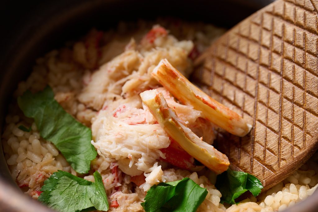 そして、ふっくらと炊き上げた「かにの炊き込みご飯」。