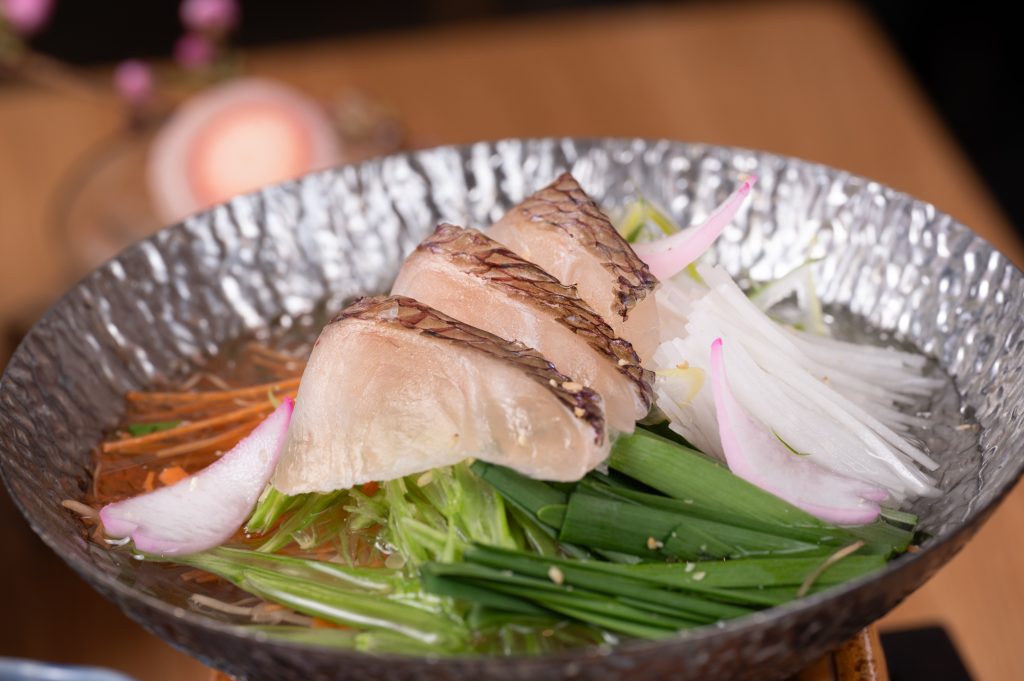 透き通るような白身に、ほんのりと桜色を帯びた鯛の身が春の訪れを感じさせます。