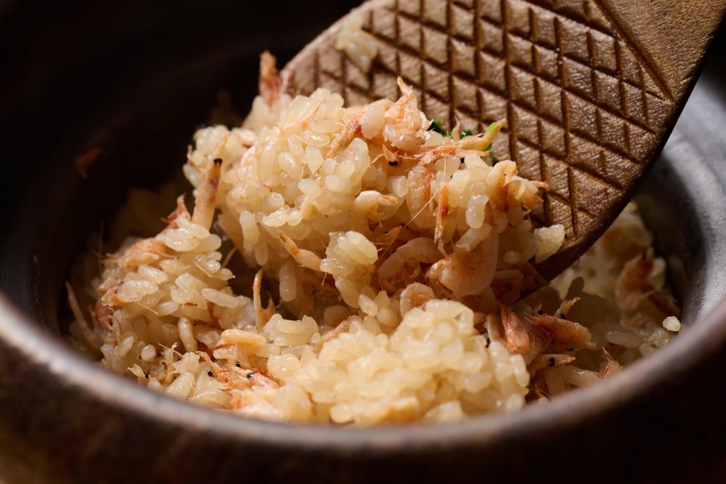 炊き込みご飯には、香ばしい桜えびをふんだんに使用。