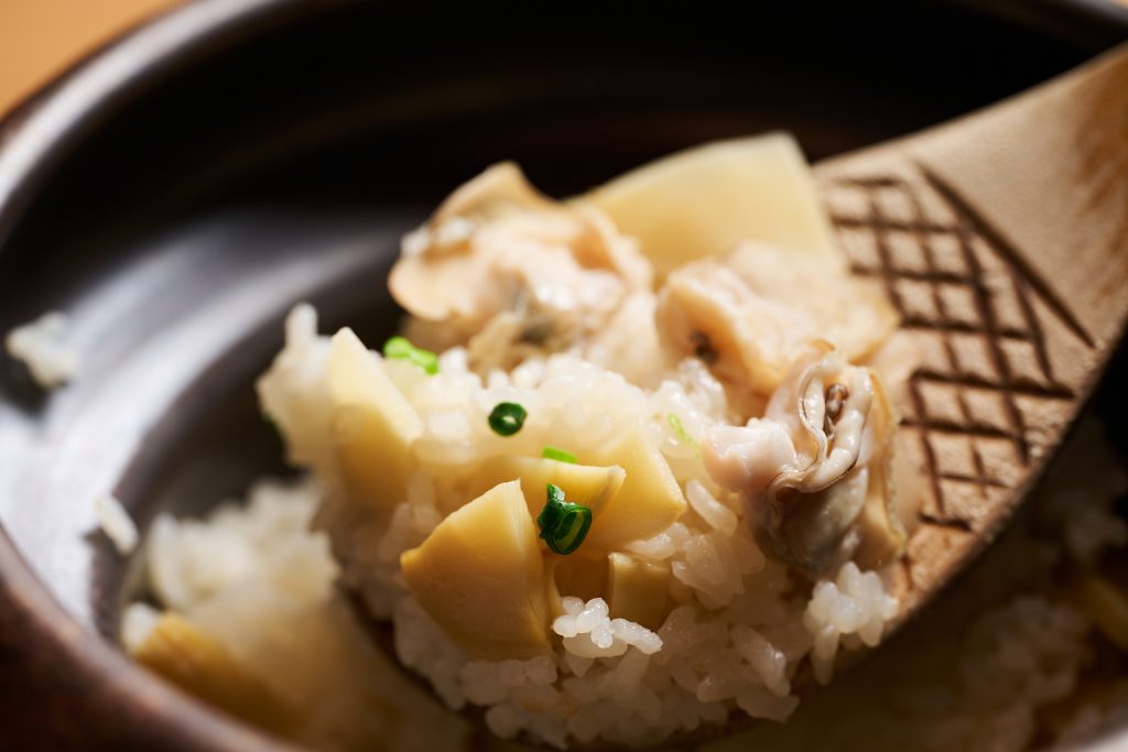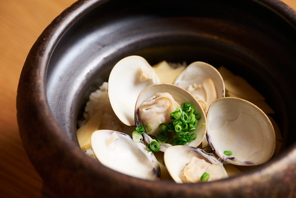 合わせて炊き上げた「蛤と筍の炊き込みご飯」は、春の香りと食感のコントラストが楽しめる贅沢な一品。