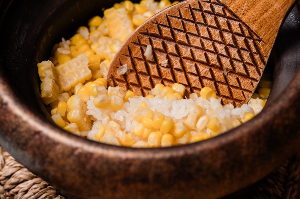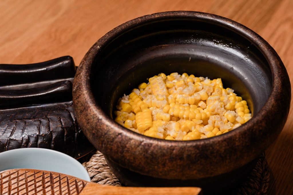 そこに添えられるのは、甘みの強いとうもろこしの炊き込みご飯。