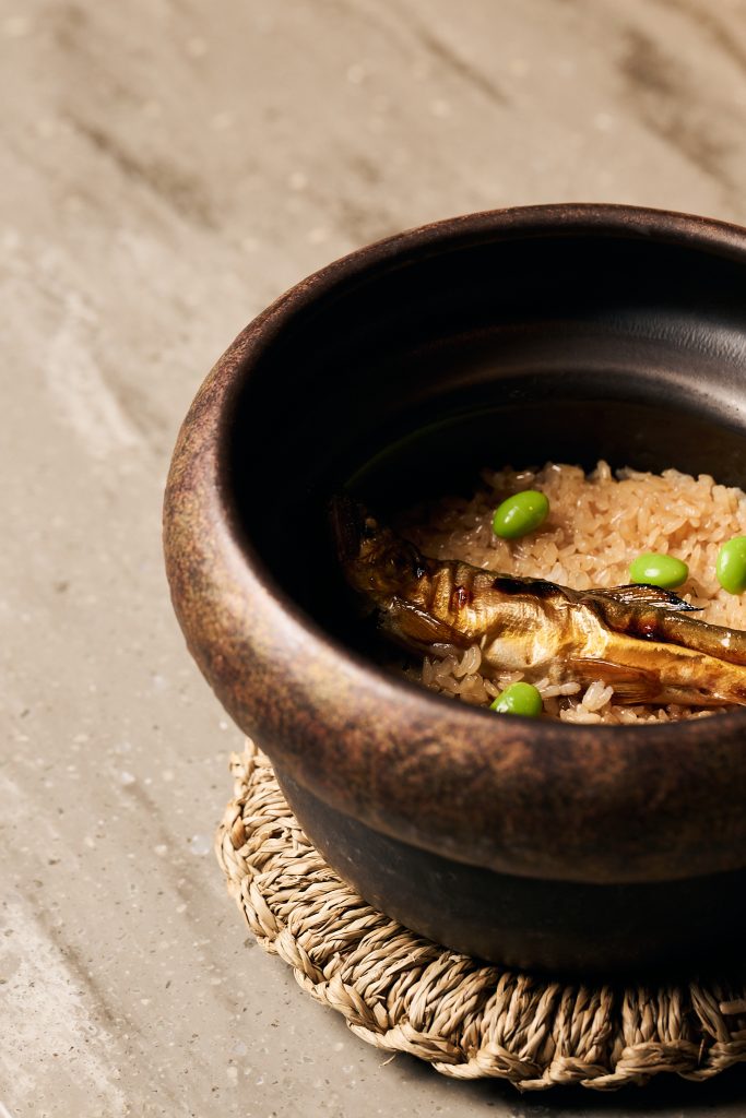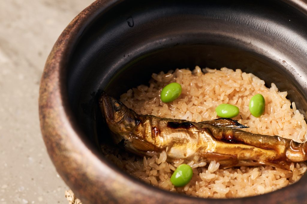 鮎の甘露煮の炊き込みご飯は、優しい色味の中に香ばしさが感じられるよう、