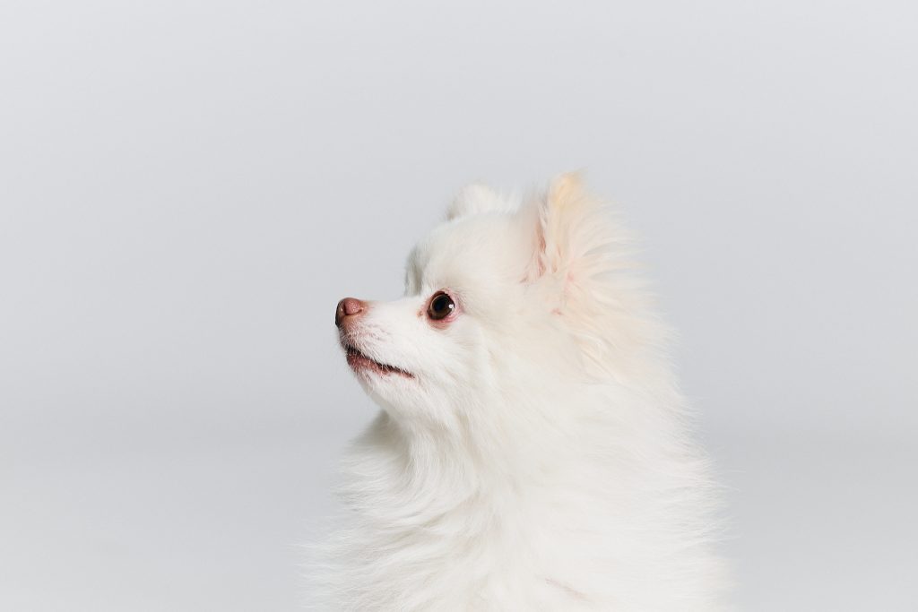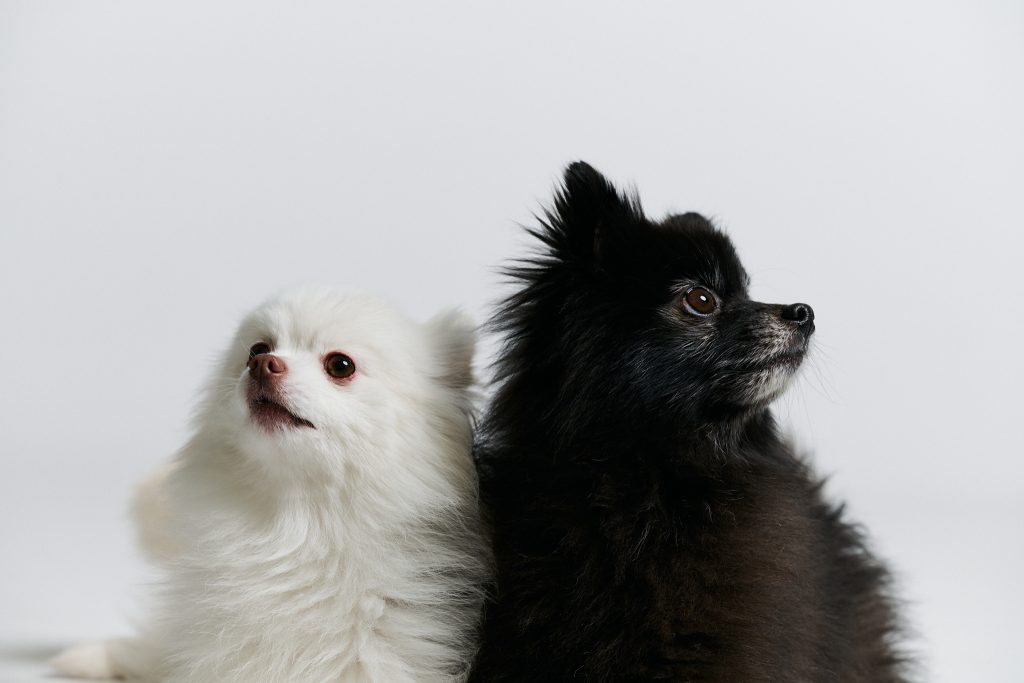 ポメラニアンは毛量が多く、背景色によって印象が大きく変わるため、