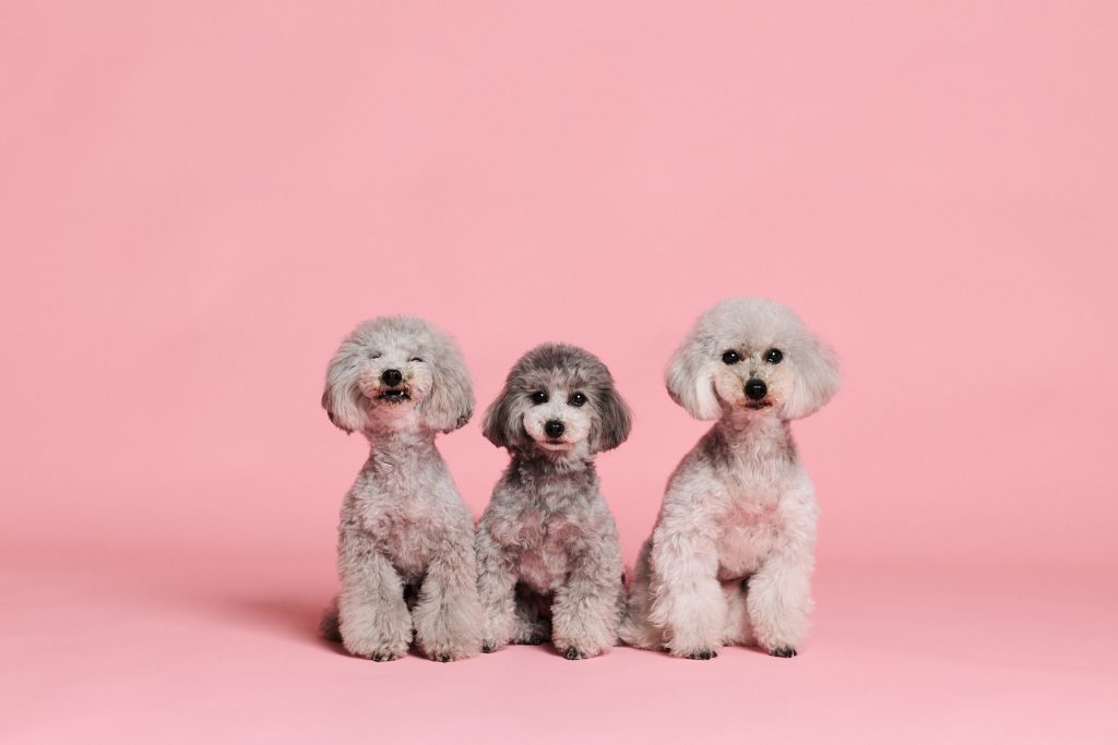 3匹の白いトイプードルが魅せる、まっしろな幸せ。熊本のペットフォトスタジオWaoon(ワオーン)で叶える家族撮影