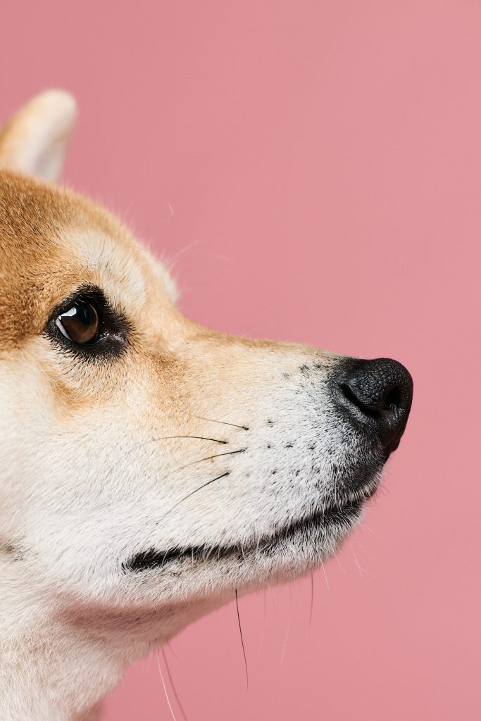 キリッとした瞳と、くるんと巻いた尻尾、そして穏やかなまなざし。