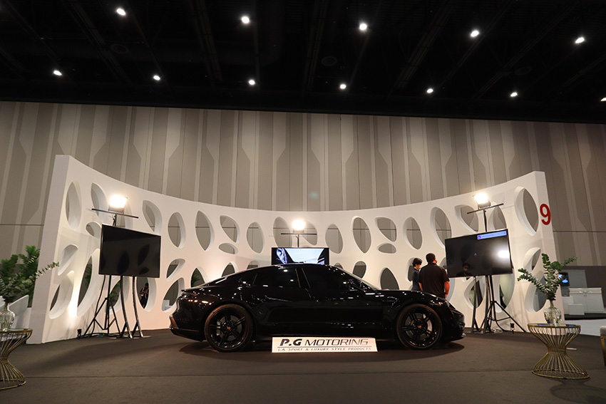 ブースデザインの意図がわかるように俯瞰的に撮影。