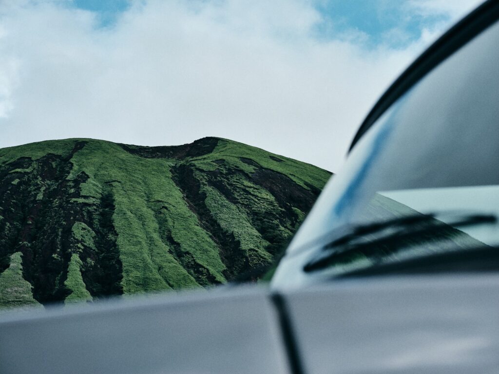 阿蘇の雄大な景観とクラシックカーの組み合わせは、車撮影の世界観を表現するには理想的なロケーション。