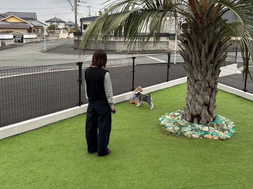 人工芝で清潔に管理されているドッグラン。1組ごとの個別スペースもあり、他の犬が苦手な子や初心者にも安心です。