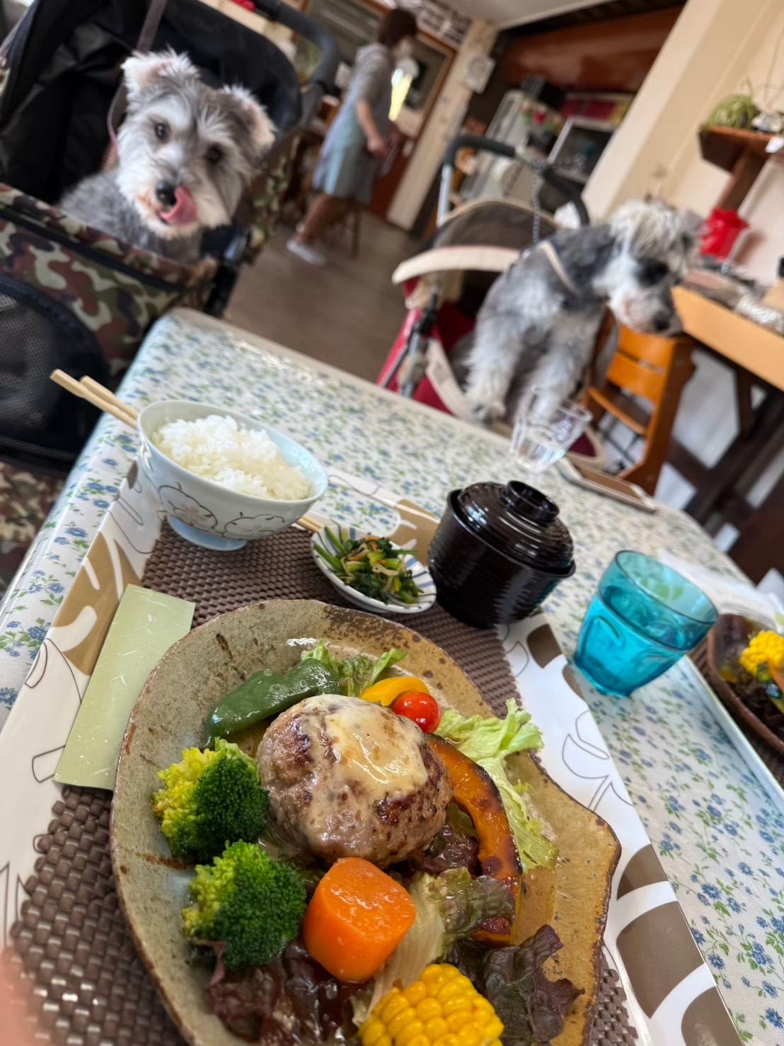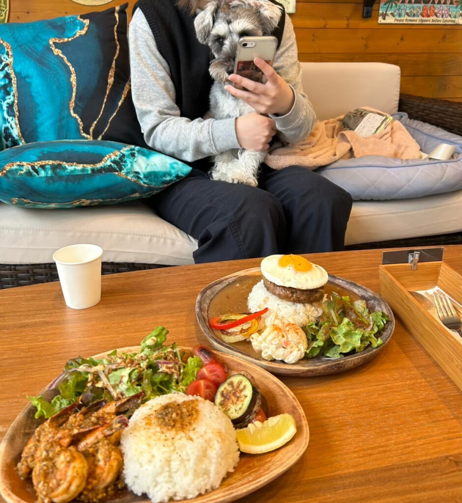 素材にこだわった手作りハンバーグが人気。犬用ご飯メニューやカートもあり、安心して訪れられるカフェです。敷地内にドッグランあり。