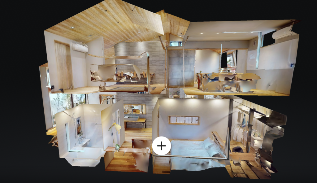 一般的な360度画像のVRは「その場で見回す」体験が中心ですが、マターポートは複数地点のスキャンをつなぎ、フロア全体を連続的に移動しながら見られるため、建築・不動産との相性が抜群です。