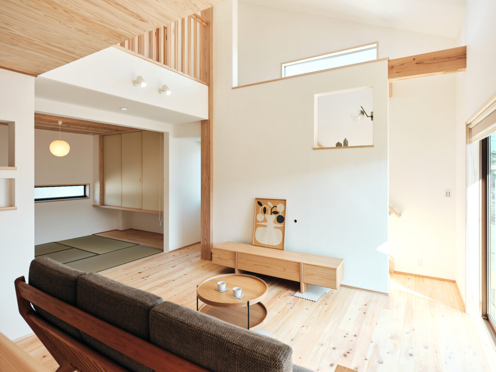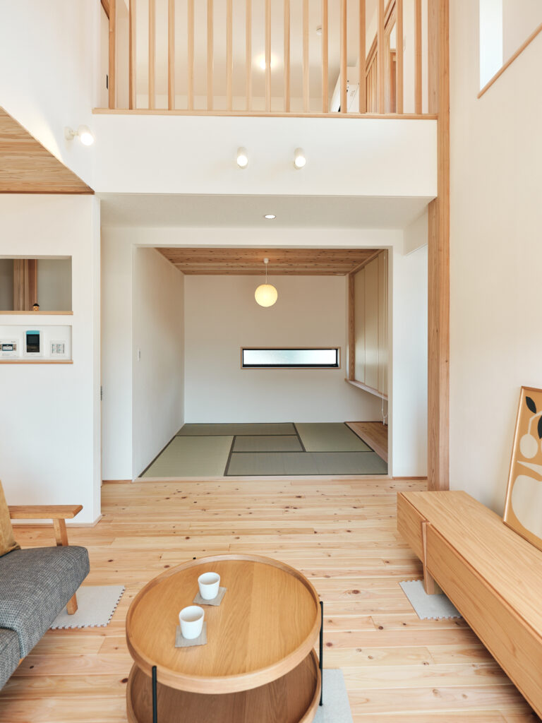 この住まいは、吹き抜けと畳スペースが印象的で、視線が奥へ抜ける気持ちよさがあります。