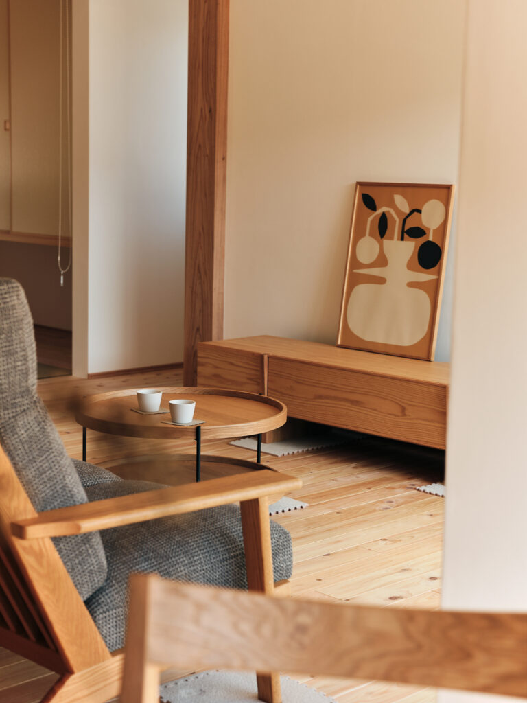自然光が整う時間に撮影できると、照明だけでは作れない立体感や、白壁のやさしいトーン、木の表情の豊かさが、そのまま写真に乗ります。