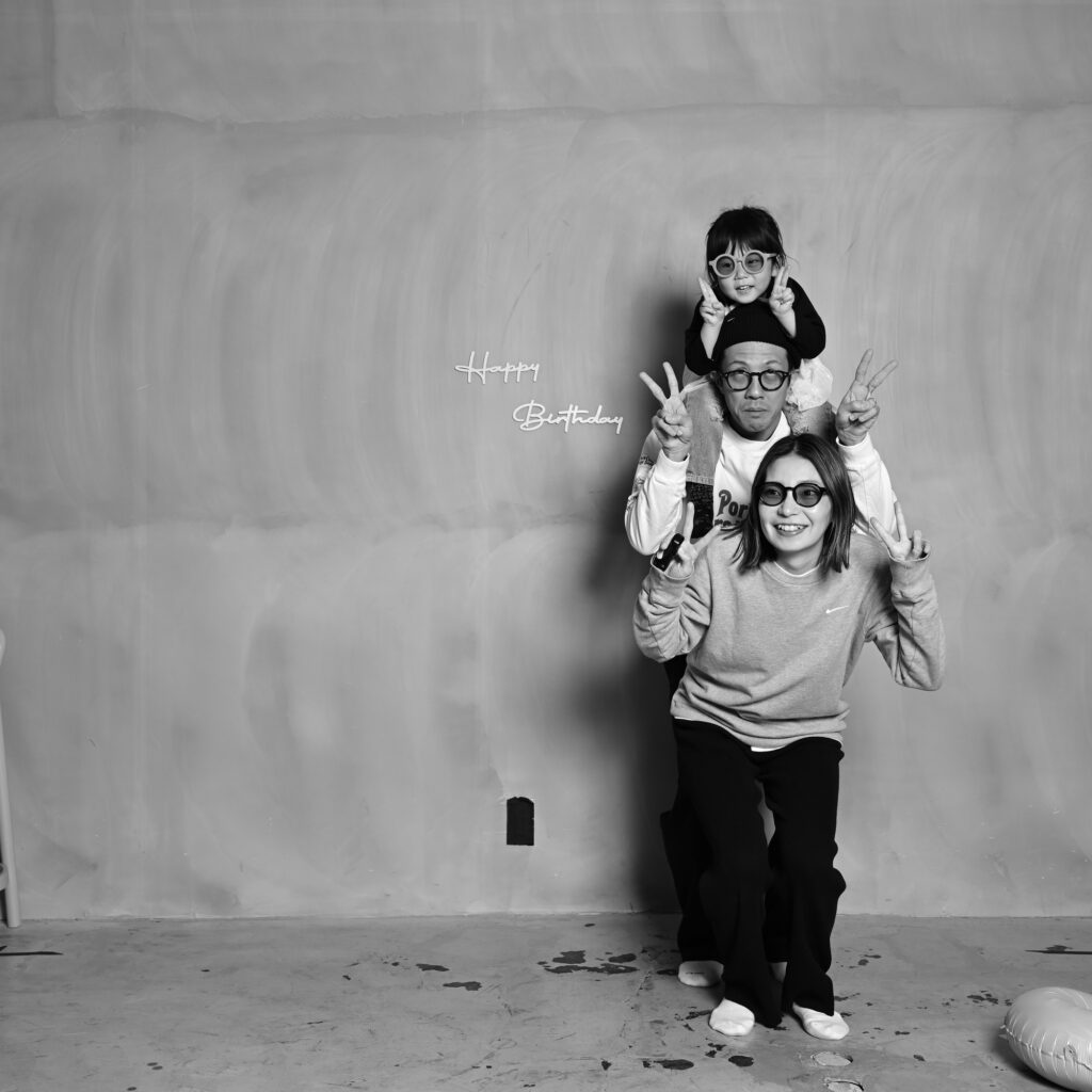 従来の写真館とは少し違い、自分たちでシャッターを押して撮影するスタイルのスタジオですが、実は家族写真との相性がとても良いのです。