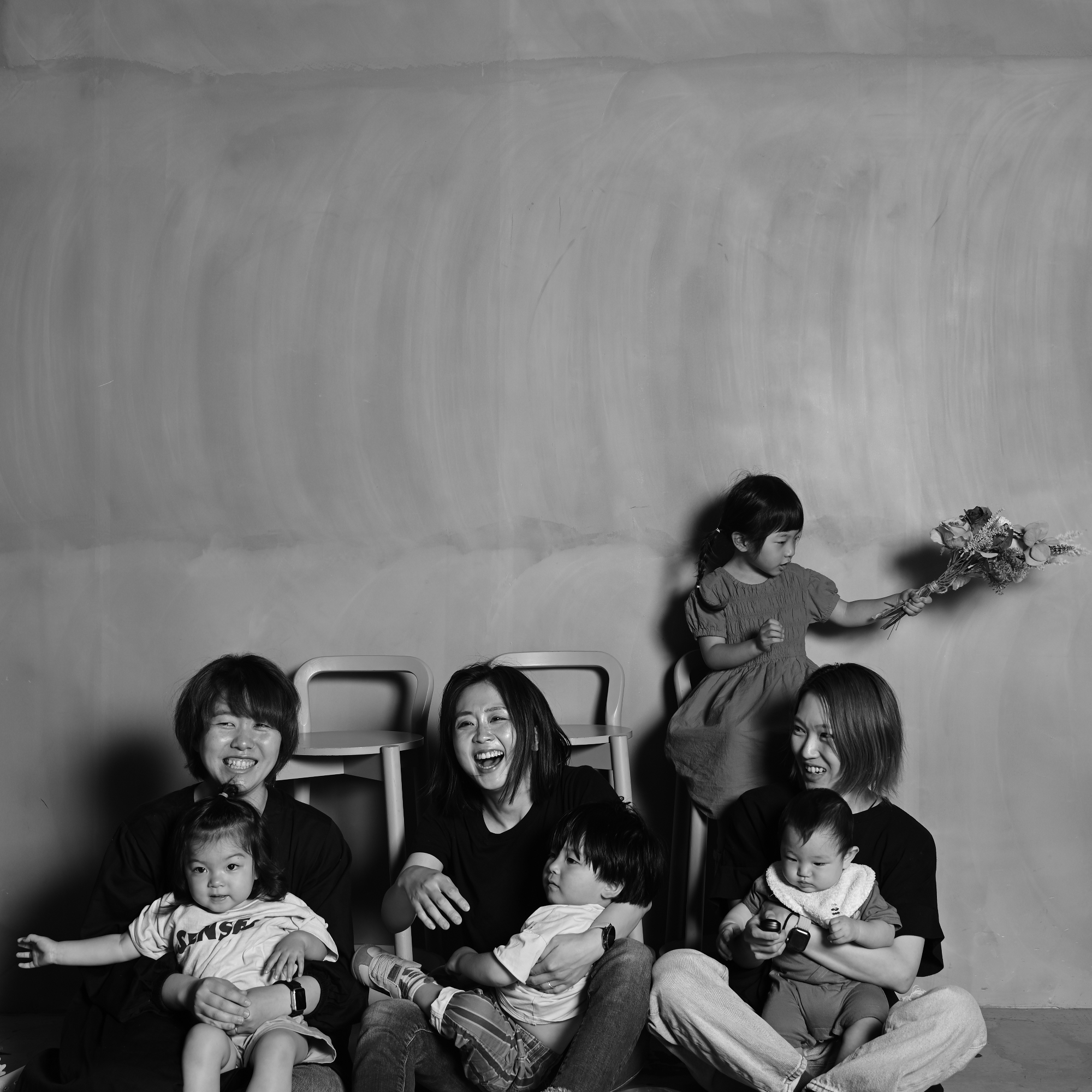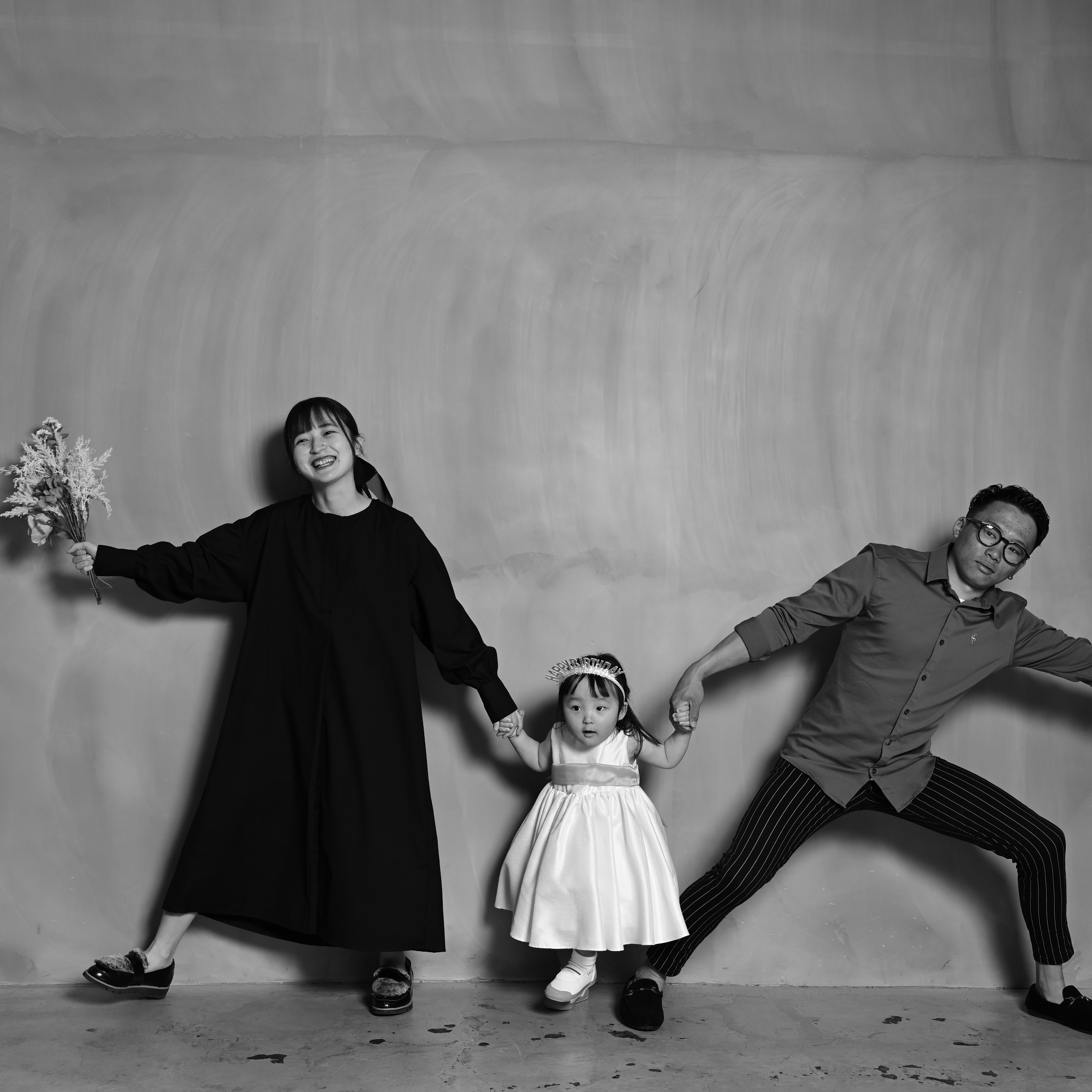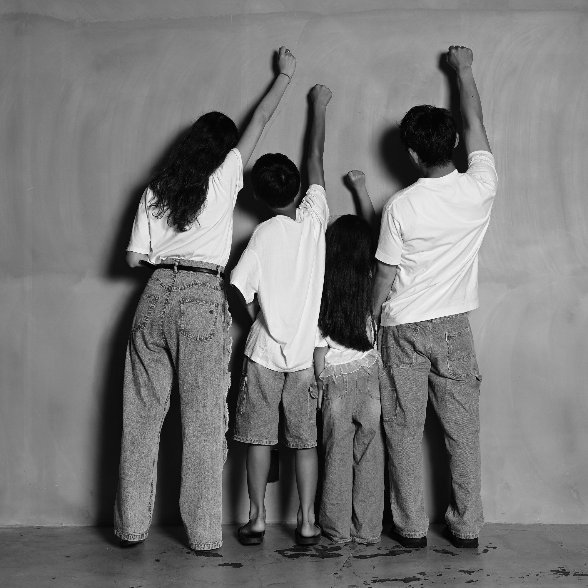 縦一列ポーズで家族の絆を強調!シンプルで印象的な家族写真