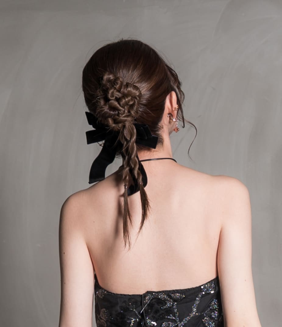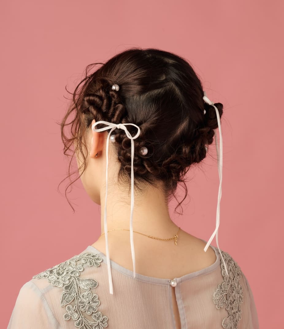 当店では、リボン(150円〜)と金箔(つけ放題300円)の販売をしておりますので、何かつけたいけど、持っていないという方にも安心していただけます!また、髪飾りがなくても寂しくないヘアスタイルもありますので、ご相談いただけると幸いです。